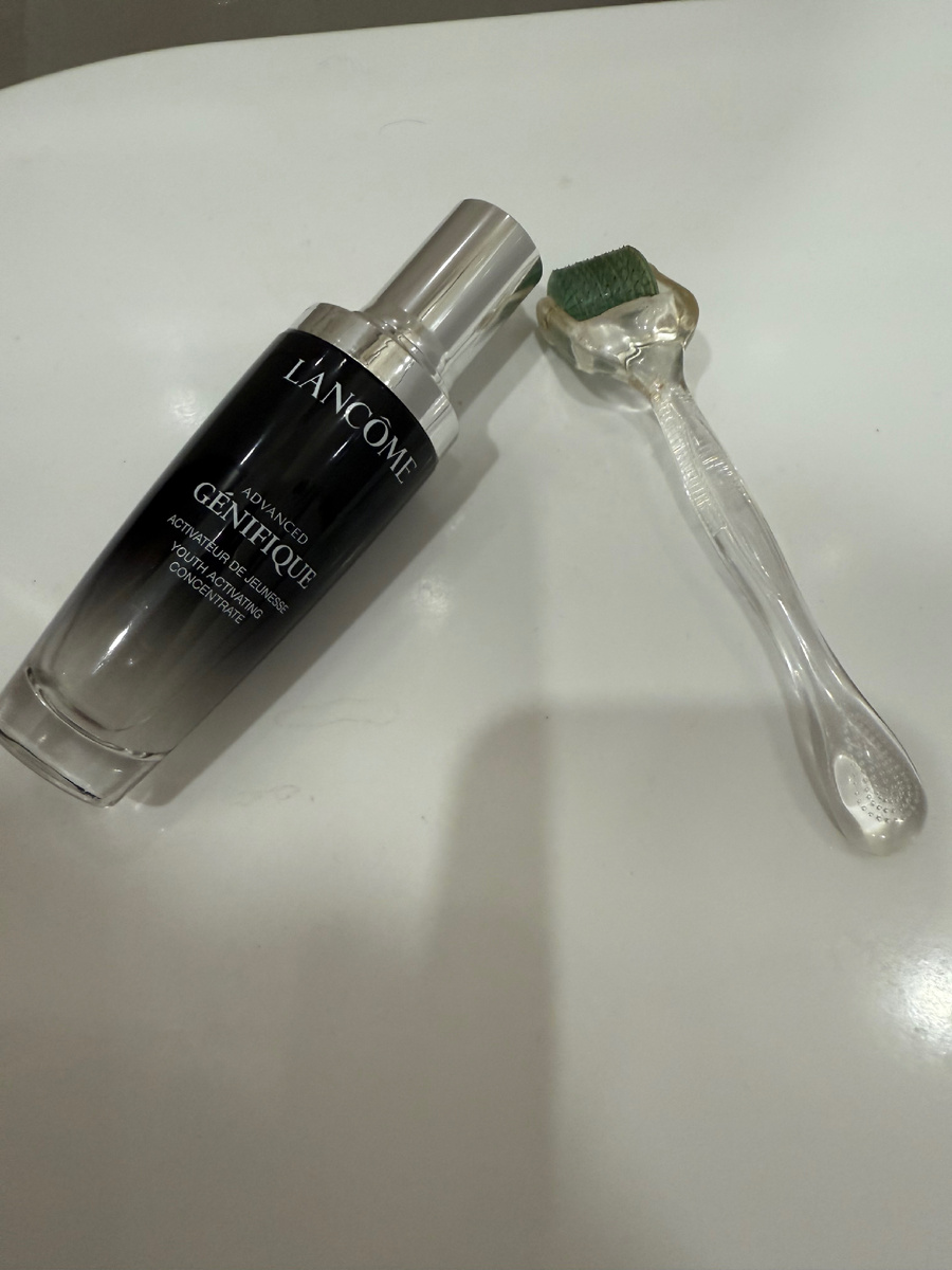 Солнечные лучи хоть и придают коже красивый загар, но в целом они неблагоприятно влияют на ее состояние. Ультрафиолет активизирует процессы старения, усиливает сухость и снижает тонус кожных покровов. Поэтому после пляжного отдыха я всегда провожу курс восстанавливающих процедур в домашних условиях. После обычного очищения я наношу на кожу сыворотку Lancome (можно брать любую сыворотку в зависимости от вашего бюджета: от бюджетной до условного valmont и la mer). Наношу похлопывающими движениями, как бы вбивая препарат в кожу. А затем прохожусь по коже мезороллером. Мезороллер покупала достаточно давно на Авито. Движения осуществляю строго по линиям Лангерганса Еще в 19 веке немецкий исследователь Карл Лангер изучил анатомо-физиологические особенности кожи человека и установил наличие на ней участков повышенной прочности в виде отдельных линий. Движения строго по этим линиям не растягивают кожу, а, наоборот, как будто бы приподнимают ее вверх и расправляют морщины. Макияж я снимаю тож