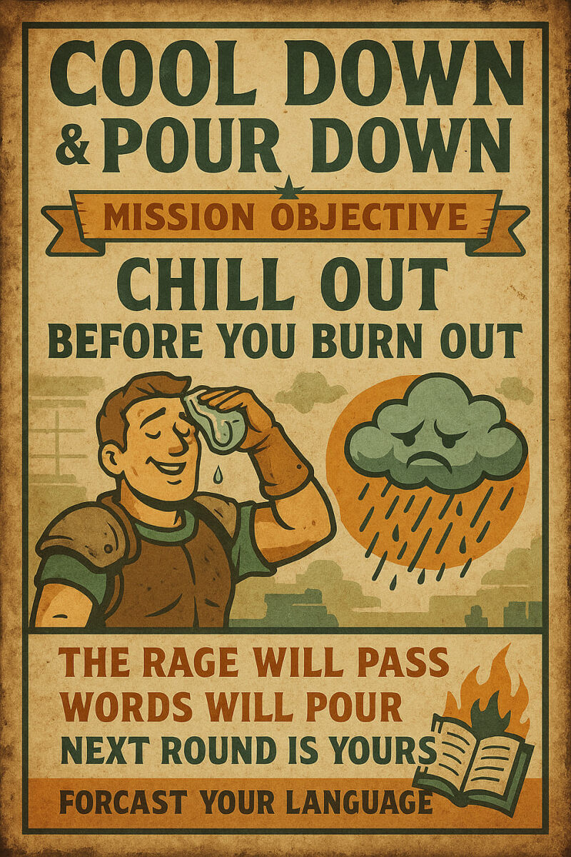📄 «Cool Down» и «Pour Down» — Протокол Управления Погодными Выражениями Активирован Кому: Оперативникам ESL, Контролёрам Эмоций и Наблюдателям Бурь От: Департамента Стихийных Идиом и Вербальной Метеомагии 📅 Дата: 19.08.2025 🎯 Цель миссии Расшифруйте и примените фразовые глаголы «cool down» и «pour down», чтобы овладеть эмоциональной погодой, метафорами среды и тактиками речевой реакции в бурных или перегретых контекстах. 🧠 Сводка разведки: Значения и применение COOL DOWN ✅ Значение: 🎮 Полевая эксплуатация: 💬 Примеры использования: 🧊 Тон: Успокаивающий, стратегический, разрядочный 🌧 POUR DOWN ✅ Значение: 🎮 Полевая эксплуатация: 💬 Примеры использования: 💥 Тон: Драматичный, интенсивный, выразительный 🛑 Предостережение: ❌ Cool down ≠ chill out — менее разговорный, подразумевает процесс ❌ Pour down — это шквал, не морось, не капли — это поток 📎 Разбор для курсантов 🧠 Когда начинается буря — не паникуй. 🌬 Остуди реакцию. 🌧 Признай, что льёт по полной. ⚔️ Ты не просто прогноз