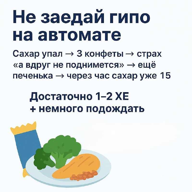 ⏳ На самом деле достаточно 1–2 ХЕ быстрых углеводов + немного подождать.