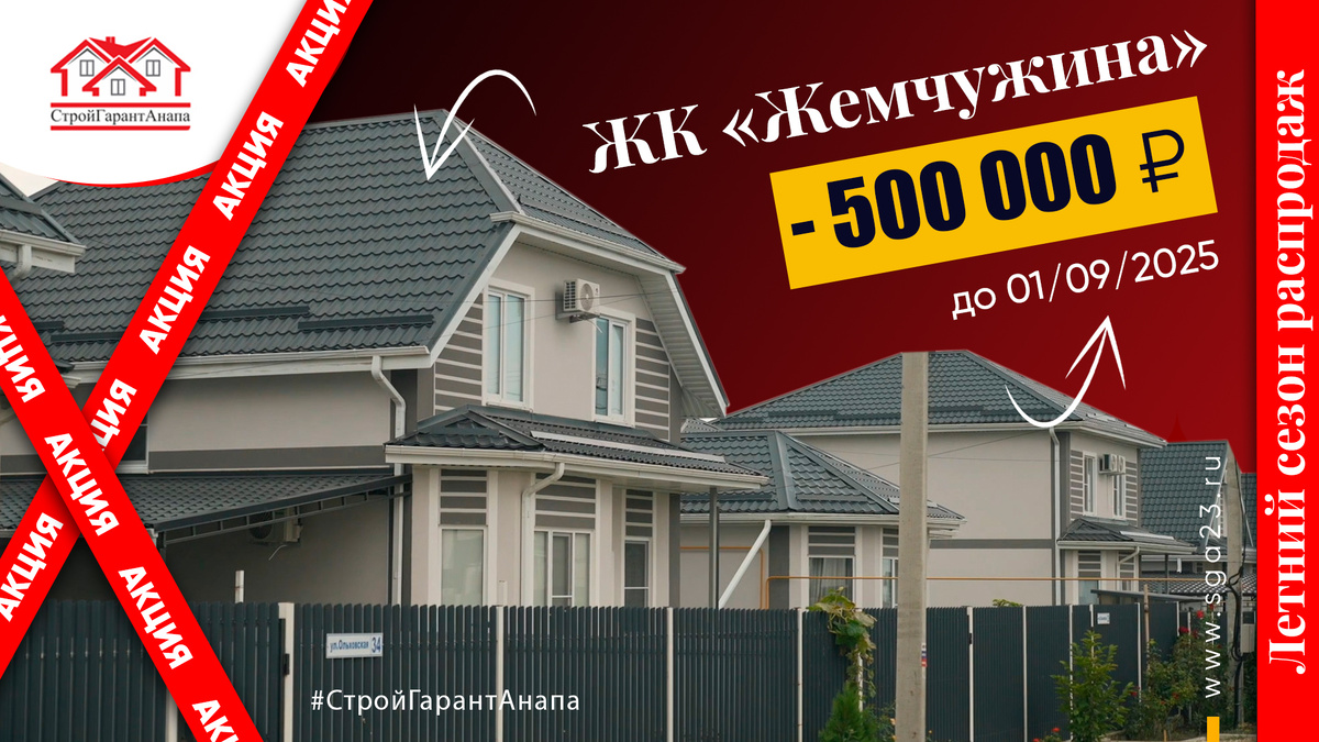 ✨ Хотите стать обладателем уютного и комфортного дома? Тогда это идеальное время для действий! Приобретая новое жилье в жилом комплексе "Жемчужина" до 1 сентября 2025 года, вы сможете сэкономить до 500 тысяч рублей! 💰 🏡 Не упустите возможность жить в стильном и современном жилом комплексе, где цены приятно удивят вас. "Жемчужина" отличается высоким качеством строительства, комфортом и удобствами для жизни. ✅ Почему стоит выбрать "Жемчужину"? Это место, где ваши мечты о собственном доме станут реальностью. Акция от компании "СтройГарантАнапа" делает вашу покупку еще более доступной и привлекательной. 🥳 Не упустите свой шанс на лучшее! Сделайте правильный выбор и станьте счастливым обладателем жилья в "Жемчужине"! Спешите, количество акционных предложений ограничено! Жить у моря это хорошо, а жить в своем доме это большое счастье!!! ЗВОНИТЕ - 8-800-2222-018 Пишите - wwww.sga23.ru Бесплатная горячая линия: 8-800-2222-018 WhatsApp: 8 (989) 229-13-33 Наш адрес: Краснодарский край, Анапск