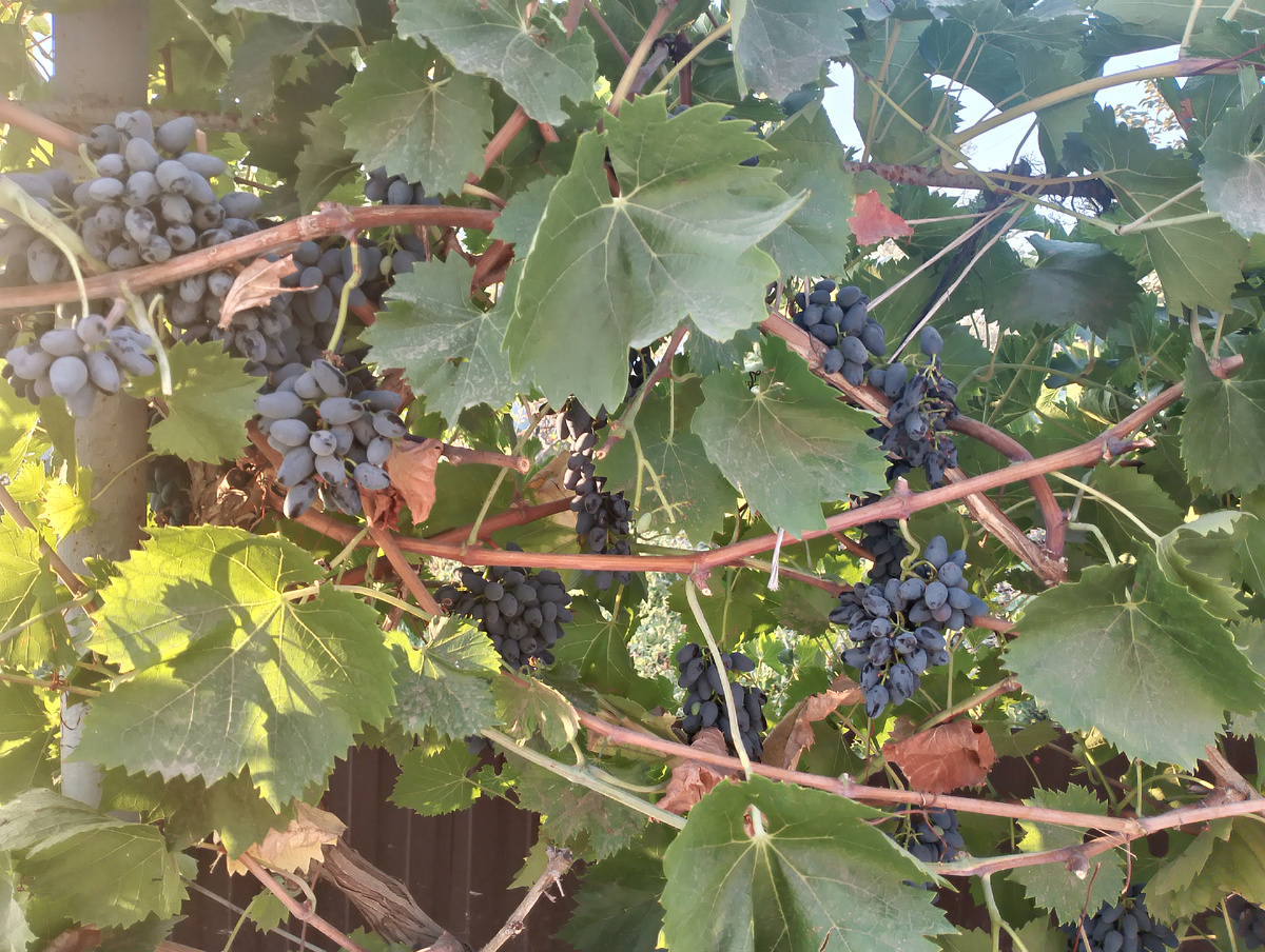 Вернулась обратно, кинула шланг под виноград, у нас вон он какой красивый, пожалуй один что уродил, но так приятно. А вкусный какой. Ну и белого есть немного..как то он в этом году не вытянул.