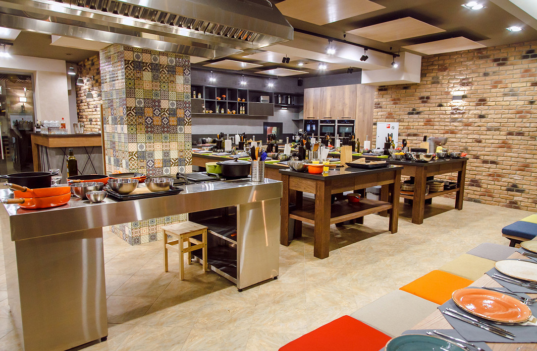 Получив в подарок сертификат, отправился на мастер-класс во Вкусотеррию. На сайте выбрал мексиканскую кухню. Менеджер согласовала дату. Перед посещением также напомнила о визите. Студия находится близко к метро улица 1905 года. Администратор встретила, рассказала о студии. Можно взять вино с собой или купить в магазине на 1 этаже. За пробковый сбор берут 250 рублей. Начинается с того, что шеф-повар приветствует всех и приглашает в студию. Столы засервированы, у каждого гостя подписано имя. Надеваем фартуки с бейджиками, моем руки и занимаем свои места. Шеф рассказывает про меню. На мастер-классе во Вкусотеррии мы готовим: кесадилью с курицей и копченой сметаной, стейк с овощами гриль и соусом чимичури, бисквит с кокосовым кремом и ананасом. Сделаны заготовки, продукты красиво лежат на столе. Нам предстоит командная работа, чтобы приготовить блюда быстро. Одни люди делают крем - отделяют желтки от белков, смешивают с мукой и сахаром, кокосовым молоком и ванилью. Далее ставим на плит