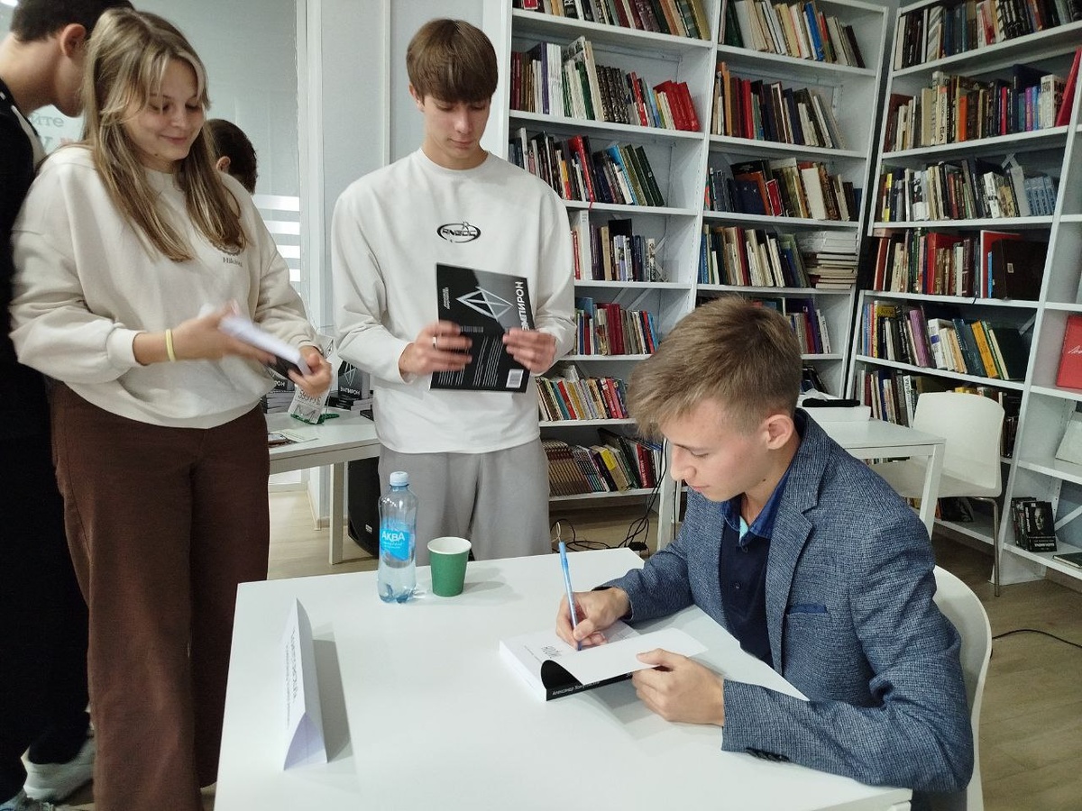 πΠΠ°Π·Π°ΡΠΎΠ²ΡΠΊΠΈΠΉ Π²ΡΠΏΡΡΠΊΠ½ΠΈΠΊ Π»ΠΈΡΠ΅Ρ β8 ΠΏΡΠ΅Π·Π΅Π½ΡΠΎΠ²Π°Π» ΡΠ²ΠΎΡ ΠΊΠ½ΠΈΠ³Ρ Π Π½Π°Π·Π°ΡΠΎΠ²ΡΠΊΠΎΠΉ ΡΠ΅Π½ΡΡΠ°Π»ΡΠ½ΠΎΠΉ Π³ΠΎΡΠΎΠ΄ΡΠΊΠΎΠΉ Π±ΠΈΠ±Π»ΠΈΠΎΡΠ΅ΠΊΠ΅ ΠΈΠΌ. Π€. Π. ΠΠΎΡΡΠΎΠ΅Π²ΡΠΊΠΎΠ³ΠΎ ΡΠΎΡΡΠΎΡΠ»Π°ΡΡ ΠΏΡΠ΅Π·Π΅Π½ΡΠ°ΡΠΈΡ ΠΊΠ½ΠΈΠ³ΠΈ ΠΌΠΎΠ»ΠΎΠ΄ΠΎΠ³ΠΎ ΠΏΠΈΡΠ°ΡΠ΅Π»Ρ ΠΠ»Π΅ΠΊΡΠ°Π½Π΄ΡΠ° Π₯ΠΎΠΌΡΡΠΎΠ²ΡΠΊΠΎΠ³ΠΎ Β«ΠΠΌΠΏΠΈΡΠΎΠ½Β». ΠΠ°Π΄ ΡΠ°Π½ΡΠ°ΡΡΠΈΡΠ΅ΡΠΊΠΈΠΌ ΡΠΎΠΌΠ°Π½ΠΎΠΌ, ΡΠΎΡΠ΅ΡΠ°ΡΡΠΈΠΌ Π² ΡΠ΅Π±Π΅ ΡΠ΅ΡΡΡ ΡΡΠΎΠΏΠΈΠΈ ΠΈ Π°Π½ΡΠΈΡΡΠΎΠΏΠΈΠΈ, Π°Π²ΡΠΎΡ Π½Π°ΡΠ°Π» ΡΠ°Π±ΠΎΡΠ°ΡΡ Π΅ΡΠ΅ Π² 16 Π»Π΅Ρ. ΠΠ»Π°Π²Π½ΡΠ΅ Π³Π΅ΡΠΎΠΈ ΡΠΎΠΌΠ°Π½Π° Π΅Π³ΠΎ ΡΠΎΠ²Π΅ΡΠ½ΠΈΠΊΠΈ, Π½ΠΎ Π² Π΄Π°Π»ΡΠΊΠΎΠΌ ΡΠ°Π½ΡΠ°ΡΡΠΈΡΠ΅ΡΠΊΠΎΠΌ Π±ΡΠ΄ΡΡΠ΅ΠΌ... ΠΠ° ΠΏΡΠ΅Π·Π΅Π½ΡΠ°ΡΠΈΠΈ ΠΎΠ½ ΠΏΠΎΠ΄ΡΠΎΠ±Π½ΠΎ ΡΠ°ΡΡΠΊΠ°Π·Π°Π», ΠΊΠ°ΠΊ ΡΠ°Π±ΠΎΡΠ°Π» Π½Π°Π΄ ΡΠΎΠΌΠ°Π½ΠΎΠΌ, Π½Π°Π΄ ΡΡΠΆΠ΅ΡΠΎΠΌ ΠΈ Π³Π΅ΡΠΎΡΠΌΠΈ, ΠΊΠ°ΠΊΠΈΠ΅ Π»ΠΈΡΠ΅ΡΠ°ΡΡΡΠ½ΡΠ΅ ΠΏΡΠΎΠΈΠ·Π²Π΅Π΄Π΅Π½ΠΈΡ ΠΏΠΎΠ²Π»ΠΈΡΠ»ΠΈ Π½Π° ΡΡΠΈΠ»Ρ ΡΠΎΠΌΠ°Π½Π°. Π Π»ΡΠ΄ΡΡ