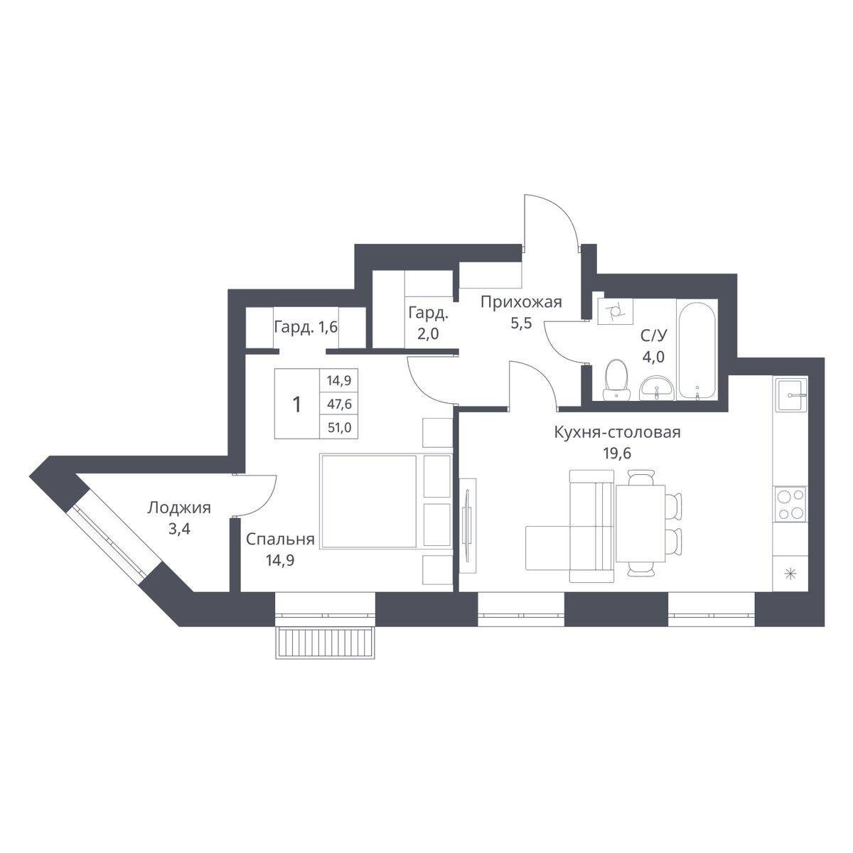 Двушка студия 51 кв.м. С первым взносом всего 880 000 р.