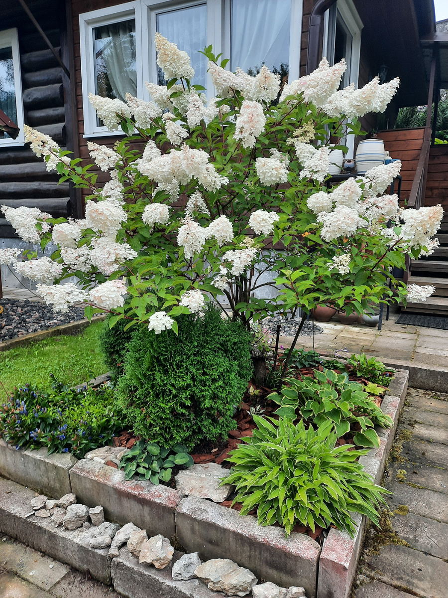 Он разноуровневый в двух смыслах. Сторона, которая ближе к дому, чуть выше той, что у дорожки.