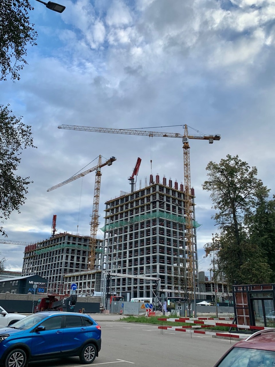 : В кадре высотные ЖК, строящиеся в Москве. 1. ЖК «SET» 2. ЖК «Sezar City» 3. ЖК «Amber City» 4. ЖК «NOVA» 5. ЖК «Родина Парк» Съёмка от 17 августа. #сет #ambercity 😊 Небоскрёбы России