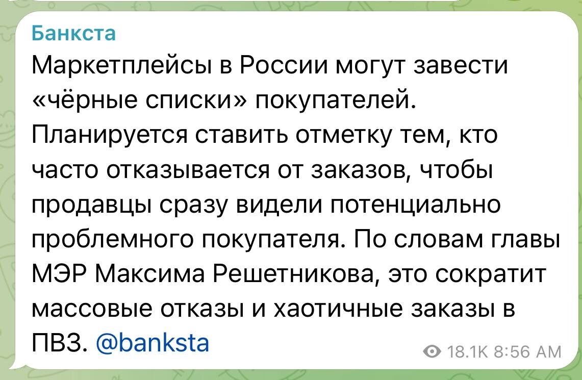 Доброе утро. ☀️ Давно нужно это сделать, покупательский терроризм нужно ограничивать👍 Только от инициативы до реальных действий может пройти много времени! Ждем 😔