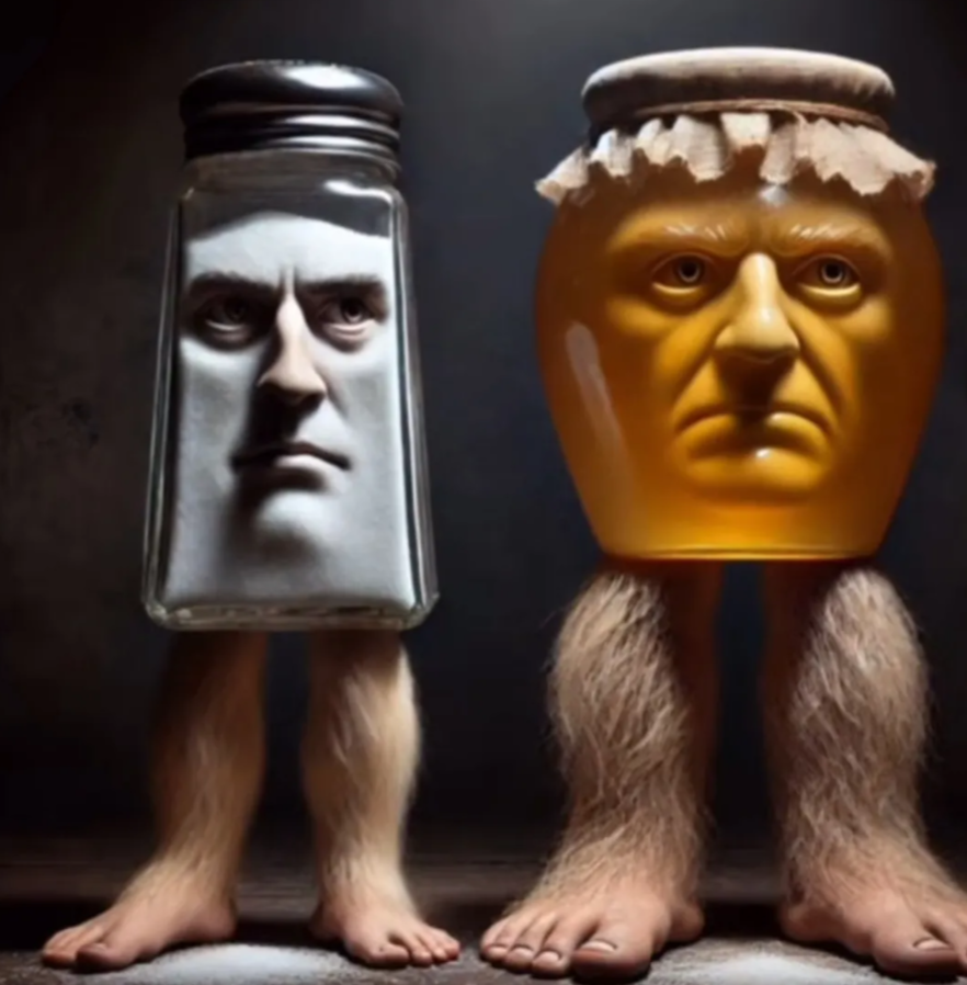 Гарамараман дан Мадудунгдунг— персонаж абсурдного интернет-мема, представляющий собой сочетание бытовых предметов с человеческими чертами. Наиболее известное изображение — это пара антропоморфных фигур: одна напоминает банку соли с серьёзным лицом, другая — банку мёда с недовольным выражением. Обе фигуры имеют человеческие ноги и ступни, что придаёт им комичный и одновременно тревожный вид.