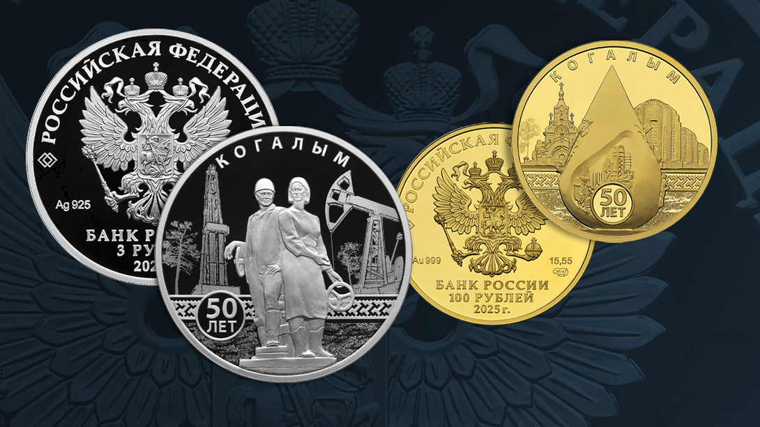 Выпускаем в обращение памятные монеты «50-летие основания Когалыма» серии «Города». Этот город в Ханты-Мансийском автономном округе — Югре известен как центр добычи и переработки нефти.