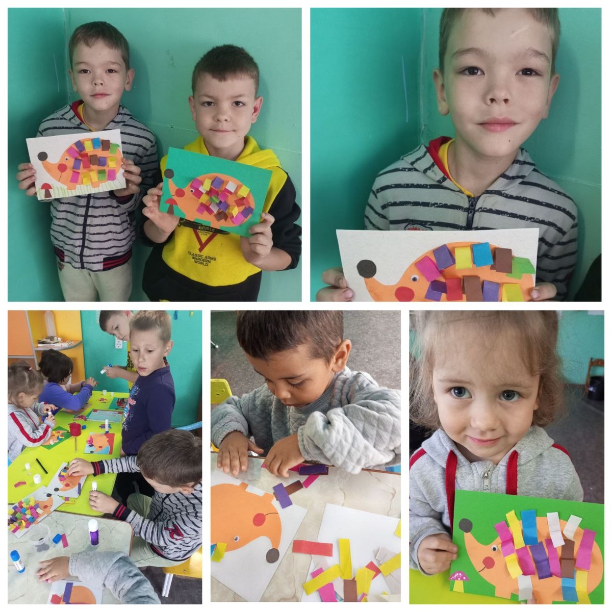 Для самых маленьких воспитанников ЛОЗД "Жердовка" прошло очередное увлекательное занятие в творческой мастерской. Ребята выполнили аппликацию «Ёжик из бумажных полосок». Аппликация - один из любимых детьми видов изобразительной деятельности: их радуют яркий цвет бумаги, удачное расположение фигур. Большой интерес вызывает техника вырезания и наклеивания. Дети, выполняя аппликационные работы, приобретают новые знания, закрепляют представления об окружающем мире. Перед началом занятия с детьми была проведена беседа о жизни ежей, прочитали рассказ И.Скляровой «Умный ежик». Воодушевлённые прослушанным произведением, дети приступили к выполнению поделки. Получились ну очень милые ёжики! Смотрите на фото.