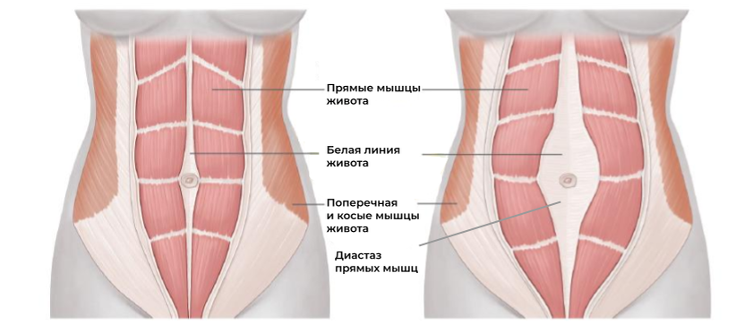 Рекомендация: При диостазе нельзя делать упражнение направленное на подъём туловища или ног, так как начинает торчать живот, при этом повышается внутри брюшное давление.