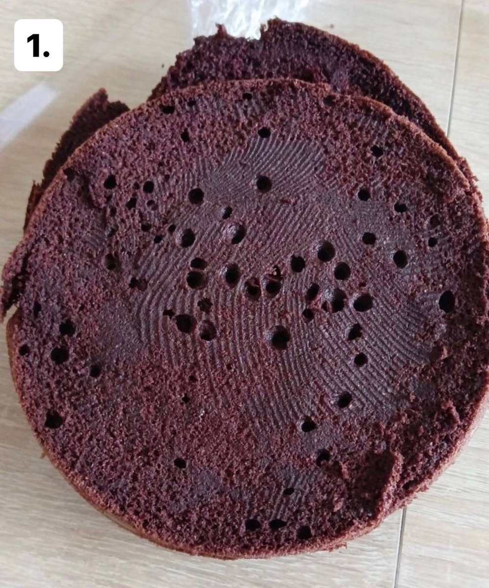 Разберем наглядно самые частые ошибки, чтобы у вас получалась нежная основа для ПП тортов. 🍰Правила приготовления шикарного бисквита рассказала ЗДЕСЬ >>> В этой статье вы узнаете, как добиться воздушной текстуры и не допустить типичных промахов. Поверьте, стоит один раз разобраться в этих тонкостях, и ваши десерты всегда будут на высоте! 1️⃣ ошибка: плотный шоколадный бисквит с «подошвой» Шоколадный бисквит получился плотным, непропеченным, да еще и с дырочками. Почему так вышло? Шоколадный бисквит - капризный из-за какао. Этот ингредиент здорово впитывает влагу и делает тесто тяжёлым. Если плохо промешать массу, какао осядет на дно, и внизу появится плотная «подошва». Чтобы этого избежать, важно очень тщательно вымешивать тесто до однородности✅ Но есть еще одна причина, которую подсказывают те самые дырочки. Скорее всего, была плохо взбита меренга. Если она недовзбита, пузырьки воздуха в ней быстро лопаются, не удерживая сухие ингредиенты. В итоге тесто оседает, и бискв