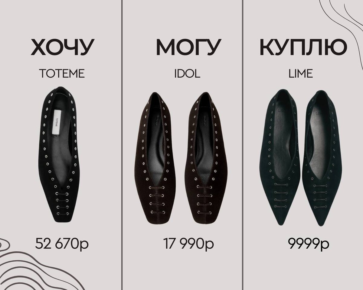 Девочки, я к вам с очередными находками для рубрики Хочу&Могу&Куплю. 🟤Нашла близняшек элегантных замшевых балеток «Toteme» с металлическими люверсами 🟤«Idol» просто клонировал, отличий даже не вижу кроме цвета! 🟤А вот Lime хоть мысок изменил, их бы я и добавила в свой гардероб! ❓А на каких остановились бы вы? Берём эти стильные новинки? #хочумогу