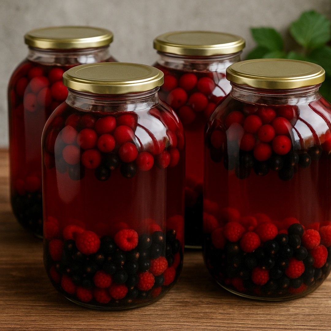Компот ассорти из вишни, смородины и малины Ингредиенты ⤵️ 🔸 Вишня – 500 г 🔸 Чёрная смородина – 200 г 🔸 Малина – 150 г 🔸 Сахар – 300 г 🔸 Вода – 2,5 л 🔸 Лимонная кислота – 1/3 ч. л. Приготовление 🥣 1. Стерилизуй 3-литровые банки и крышки. 2. Ягоды перебери, промой. Вишню можно оставить с косточками или удалить их. 3. Разложи ягоды в банки: сначала вишню, потом смородину, сверху малину. 4. Вскипяти воду с сахаром, добавь лимонную кислоту. Кипяти 2-3 минуты. 5. Залей ягоды кипящим сиропом, оставь на 15 минут. Затем слей сироп обратно в кастрюлю, прокипяти ещё раз. 6. Закатай банки, переверни, укутай одеялом на сутки. Рецепт дня #компот #ягодный_компот #вишня #смородина #малина #ягоды #консервация #заготовки