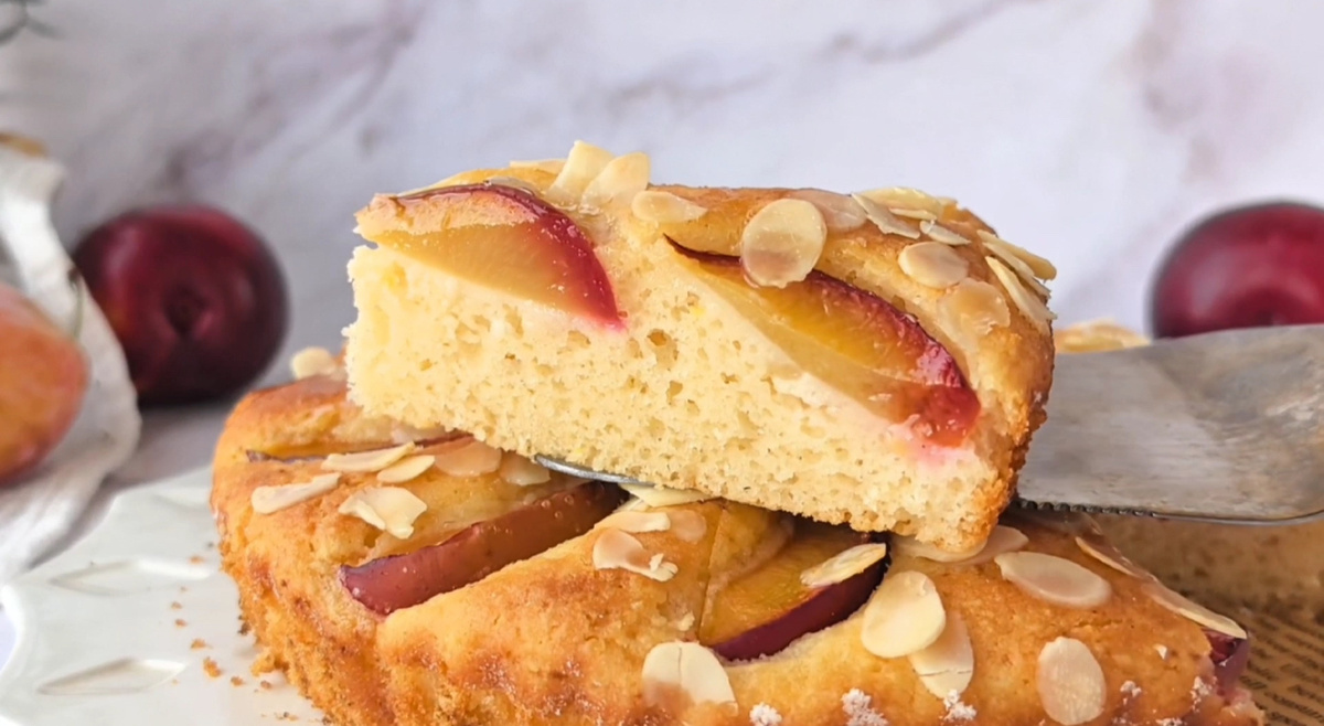 Уютный, сочный, с той самой теплой кислинкой. А какой аромат, девочки, это божественно✨ КБЖУ на 100 гр 268/8/15/25 Вес 500 гр Диаметр 18 см 📌Ингредиенты: Рисовая ц/з мука 60 гр Миндальная мука 75 гр Кукурузный крахмал 25 гр Разрыхлитель 7 гр Пребиосвит 5 гр Соль 1/4 ч.л. Яйцо С0 1 шт Греческий йогурт 130 гр Сироп топинамбура 40 гр Масло растительное или гхи (виноградной косточки, кокосовое) 30 гр Цедра 1/3 лимона Ванильная паста 1/2 ч.л.. Слива спелая, сладкая 2-3 шт Миндальные лепестки по желанию для украшения ⏩Готовим: 1) Ставим духовку разогреваться до 170 градусов, режим верх-низ. Если вы используете металлическое кольцо, тогда вам нужно поставить его на пергамент и зафиксировать фольгой. Если вы используете такую форму со съемным дном, как на видео, вы смазываете бортики небольшим количеством растительного масла, посыпаете рисовой мукой и застилаете дно пергаментной бумагой. 2) В миске смешиваем рисовую цельнозерновую муку, миндальную муку, кукурузный крахмал, раз