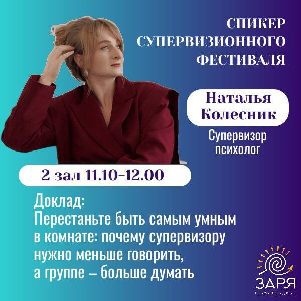 В рамках 6 супервизионного фестиваля сообщества ЗАРЯ можно поучаствовать в теоретической части и получить эксклюзивные знания о теории