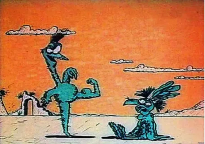 Мультфильм был для нас необычен - непривычная странная рисовка, закадровый перевод с "птичьего" на русский в один голос, отсутствие топорной морали, здоровый цинизм персонажей и искромётные ёмкие фразы.