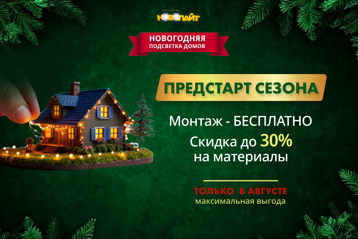 📣 Только 2 недели в августе — предложение, от которого невозможно отказаться: 💥 Монтаж — БЕСПЛАТНО 💥 Скидка до 30% на материалы 💥 Бронирование любой даты монтажа Зачем заказывать в августе? ✅ Максимальная выгода — таких условий не будет в сезон. ✅ Спокойствие и комфорт — вы в приоритете на монтаж, без очередей и спешки. ✅ Гарантированная дата установки — выберем удобный день заранее. 🛑 В сентябре цены повысятся. 🎁 Август — месяц умных решений. 📩 Напишите нам в WhatsApp 8 932 536 26 36: «Хочу участвовать в акции» — и мы всё расскажем, рассчитаем и забронируем за вами условия. ✨ Новолайт. Украшаем не дом. Украшаем воспоминания.