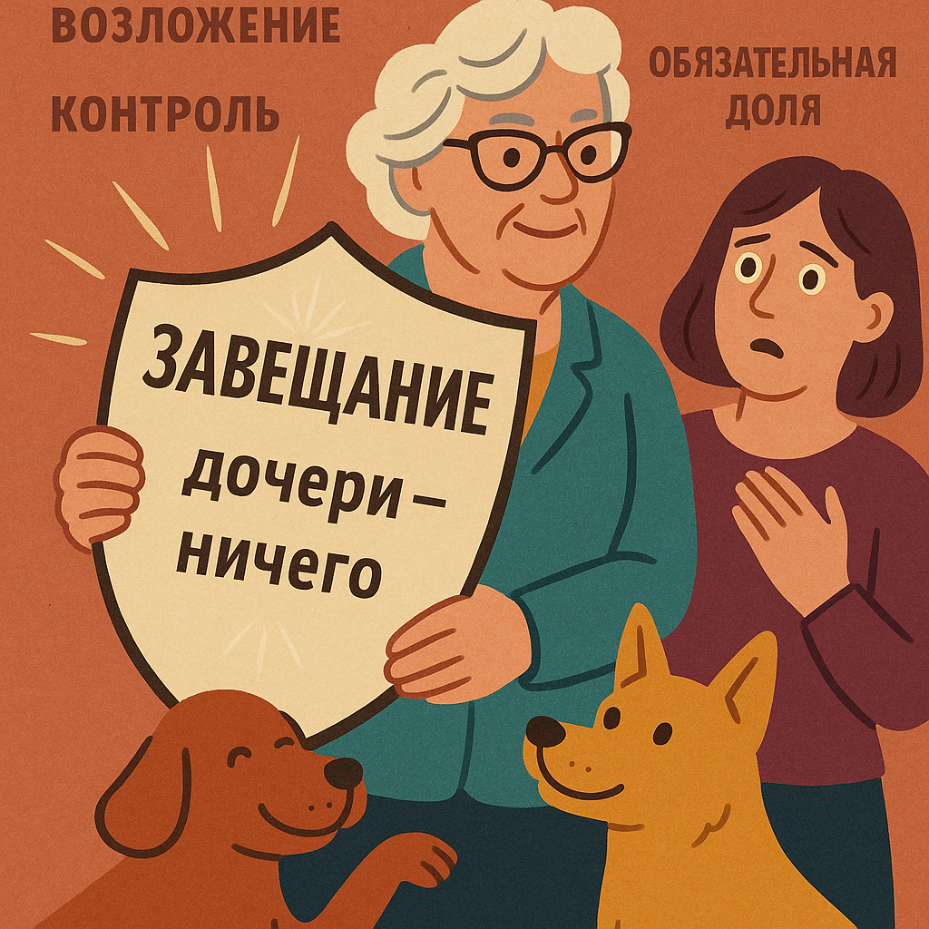 ➡️ Этот человек будет официально следить за тем, чтобы ваша подруга добросовестно ухаживала за собаками. Если она нарушит условие, душеприказчик сможет через суд потребовать исполнения обязанности или даже оспорить передачу наследства.