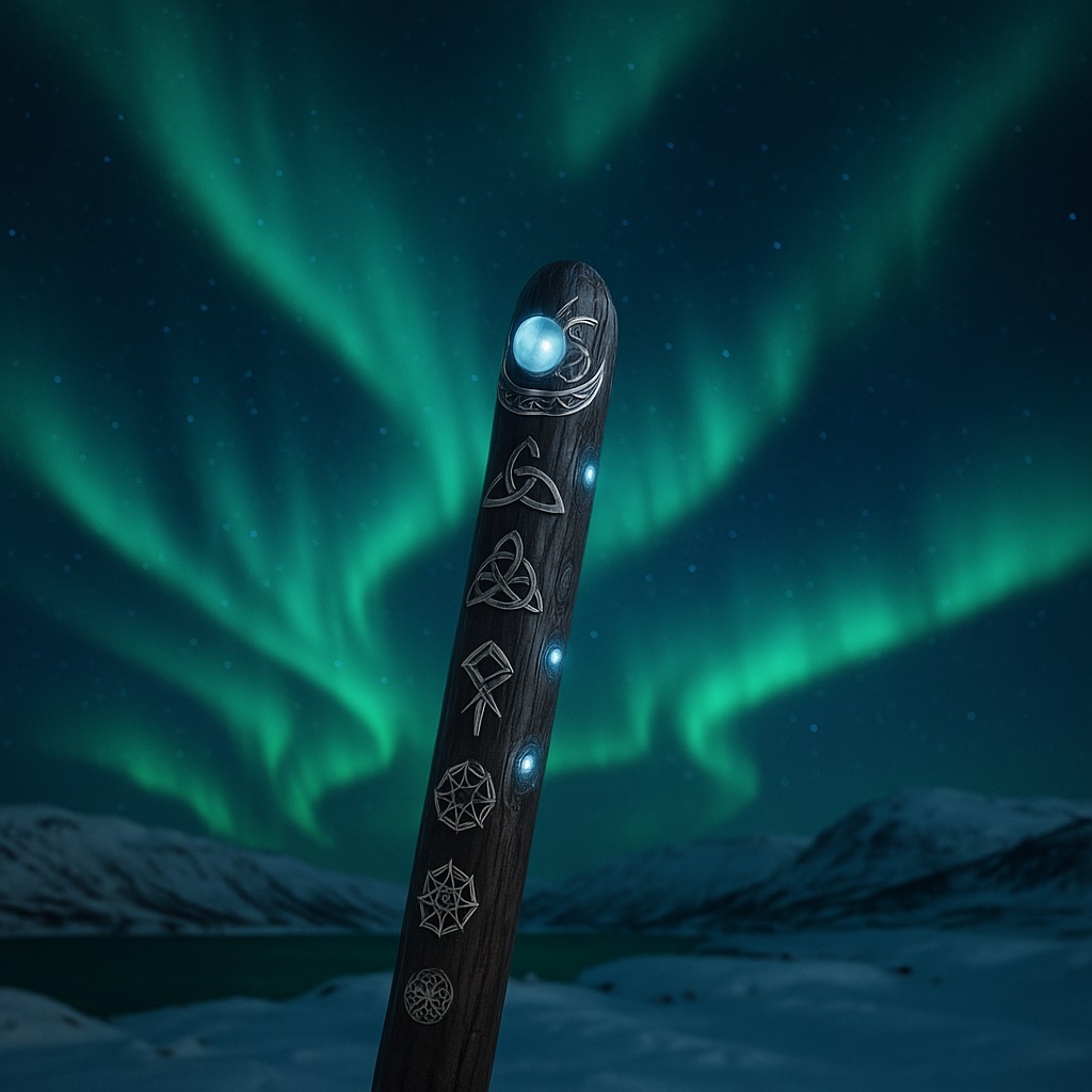 Особое место занимает связь посохов с северным сиянием. Древние верили, что это огонь богов, танцующий в небе. Ведьмы направляли сияние в свои ритуалы, а посох служил «антенной», способной ловить этот поток.