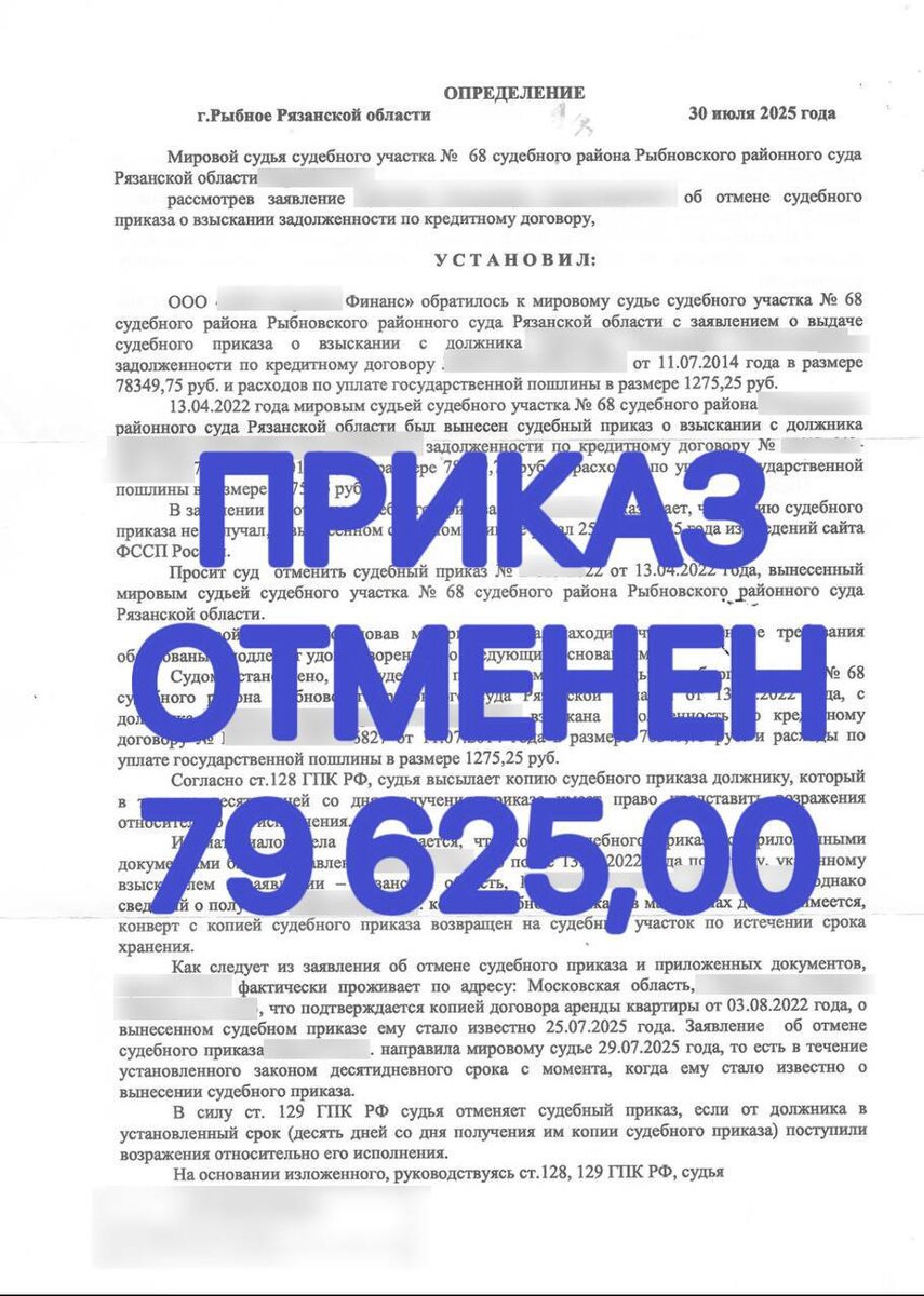 💥 Минутка радости и побед💥 12 июля к нам обратился Владимир 🙋♂️ с проблемой долгов и вопросами по банкротству. Пока мы готовили документы 📑 и ждали ответы из госорганов 🏛️, случился неожиданный поворот… 📩 25 июля 2025 года ему прилетает судебный приказ! Представьте себе: он был вынесен ещё в 2022 году, но приставы почему-то спохватились только сейчас 🤦♂️. Мы не стали сидеть сложа руки 💪 и сразу же подготовили заявление об отмене приказа⚡. И вот — именно в день, когда мы подали документы по банкротству 🚀 — приходит суперновость: ✨судебный приказ отменён✨ Это значит: ✅ Владимиру больше не грозят внезапные списания 💳 ✅ Приставы не смогут блокировать его счета 🚫 ✅ Он сделал ещё один шаг к финансовой свободе 🕊️