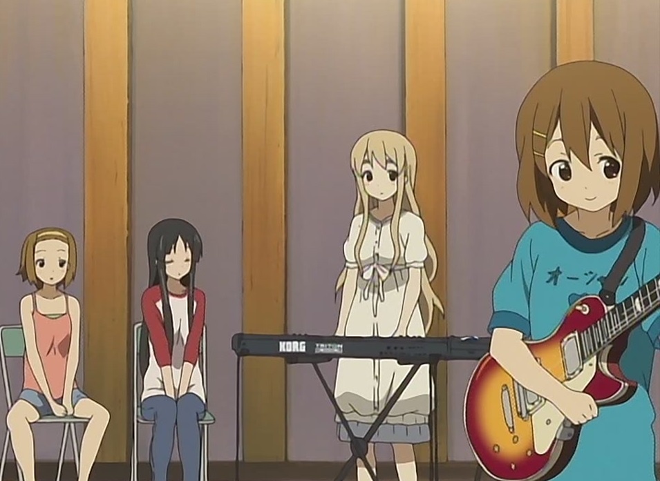 Впрочем, как говорится, было бы желание, Юи в клубе тепло примут, обнаружат у неё музыкальный талант, и она со своими подругами из клуба даже организует небольшую рок группу. И вот здесь есть небольшой нюанс, ибо играть девочки будут именно поп-рок, который будет далек от тяжести гитар, тексты будут достаточно милыми (например, про приятно проведённое время), но тот кто скажет, что это не рок, пусть бросит тортиком уже в меня.