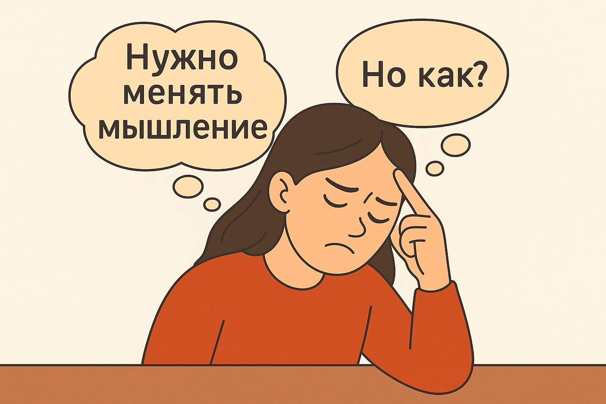 — «Измени мышление — изменится жизнь». И вроде бы мы киваем: «Ну да, звучит логично». Но проходит день, неделя, месяц — и ничего не меняется. Более того, само желание «вникать» куда-то уходит. Почему так происходит? Даже если знакомое — это самокритика, обесценивание или постоянные сомнения. Привычные мысли кажутся безопаснее, чем новые. В психологии есть понятие «зона комфорта» — и она совсем не всегда комфортная. Часто это просто привычная боль. Выходить из неё страшно. А работа с мышлением — это не магическая таблетка. Это процесс. Иногда медленный, но зато устойчивый. Что можно сделать? ✔ Начать с маленьких шагов. Не переписывать всю жизнь, а замечать одну-две мысли в день.
