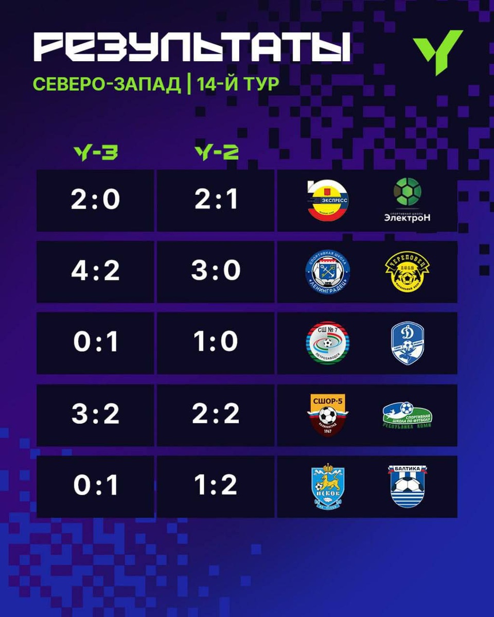 Результаты 📝 14 тура и турнирная таблица 📊 после 14 тура. ЮФЛ Северо-Запад | Юношеская футбольная лига