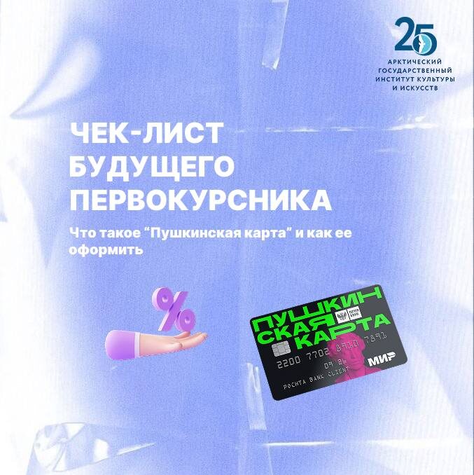 🧑🎓Чек-лист будущего первокурсника Чтобы сэкономить ваши деньги и время, мы подготовили для вас карточки: *️⃣что такое «Пушкинская карта»; *️⃣кому она доступна; *️⃣как быстро её оформить; *️⃣как ею пользоваться. Также напоминаем, что 1️⃣деньги с «Пушкинской карты» невозможно снять. Это именно те средства, которые предназначены для оплаты культурных мероприятий, которые входят в программу; 2️⃣«Пушкинская карта» - именная. Когда вы оплачиваете ею мероприятие на сайте, вам на почту приходит именной билет. Если отдать пластиковую карту постороннему человеку и он, допустим, сможет купить билет в кассе, то при входе на мероприятие все равно могут попросить показать паспорт для проверки данных; 3️⃣карта пополняется 1 января каждого года. Если у вас останутся на счету неиспользованные средства за предыдущий период - они сгорают. 🔗Оставляем кликабельные ссылки для вашего удобства: 1️⃣Завести аккаунт на портале «Госуслуг»; 2️⃣Подтвердить аккаунт с помощью онлайн-банков; 3️⃣ Подтвердить а