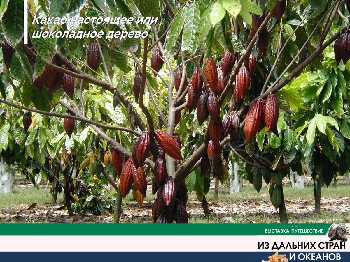 Нет такого человека, который не любил бы шоколад. Родина какао - тропические леса Центральной и Южной Америки. Латинское название растения в переводе с древнегреческого означает «пища богов». Плоды какао-дерева похожи на продолговатую дыню с продольными бороздками, а под твёрдой оболочкой скрывается до 50 какао-бобов. Чтобы изготовить 1 кг какао-порошка, потребуется около 40 плодов шоколадного дерева.