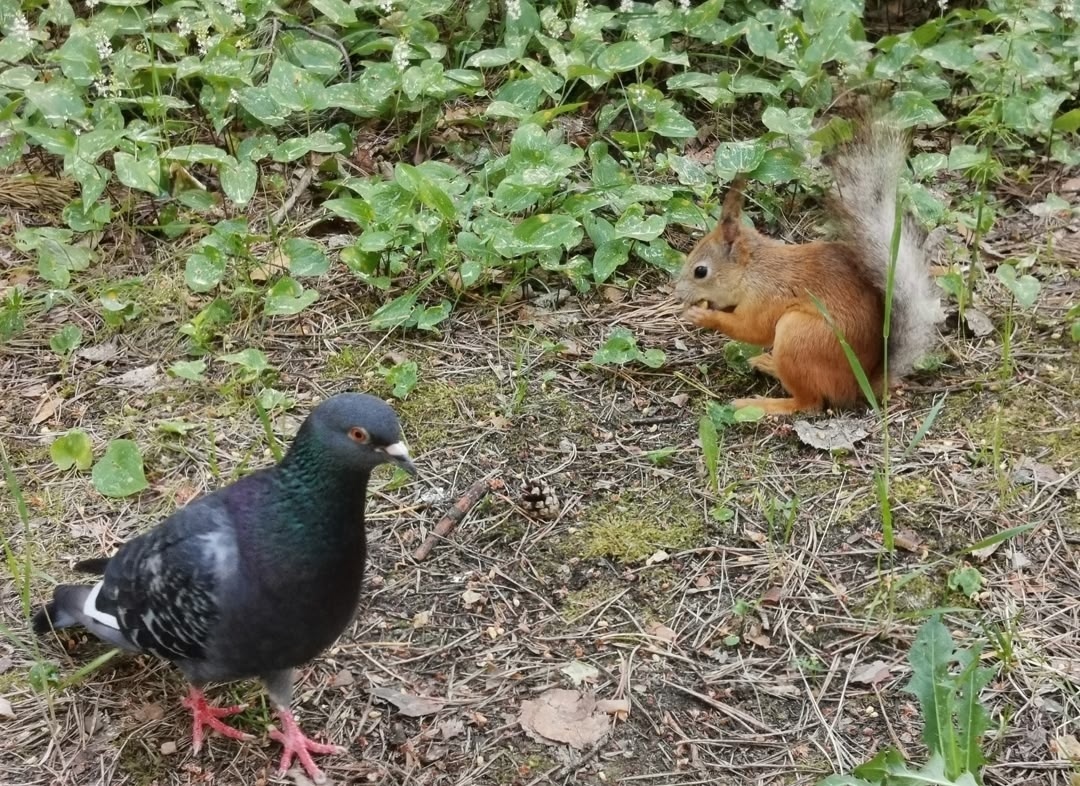 В-третьих, чаще всего они пересекаются в одном месте – у кормушки или там, где люди оставили крошки. И в этот момент они скорее терпимые соседи или даже конкуренты, чем друзья. Голубь может недовольно клевать в сторону белки, отгоняя ее от лакомого кусочка. Белка может резко дернуться или фыркнуть, отпугивая назойливую птицу. Мирное сидение рядом в такие моменты – это обычно результат привыкания к постоянному присутствию друг друга и полной сосредоточенности на еде, а не проявление симпатии.
