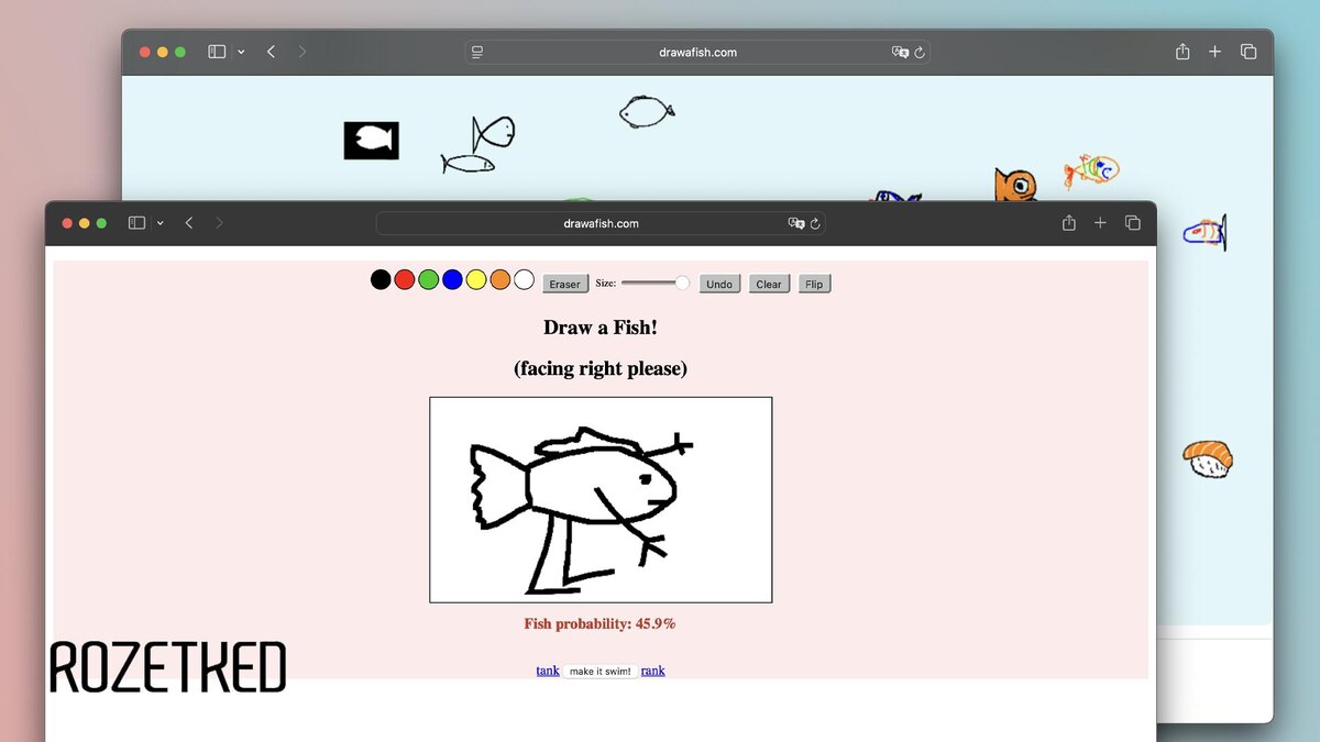 Именно для этого и создавался интернет В сети обратили внимание на веб-сайт Draw a Fish. Название говорит за себя: всё, что нужно сделать на этом сайте — нарисовать свою рыбу и запустить её в аквариум. В самом аквариуме можно посмотреть на чужих рыб, а также — их покормить. Помимо аквариума и редактора, есть страница с рейтингом рыб. 💼 Rozetked | Подписаться