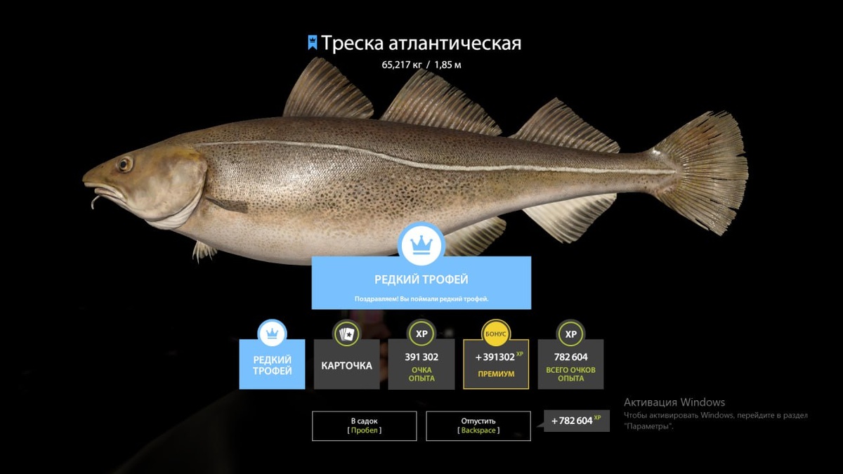 - Рыба: Треска атлантическая редкий трофей