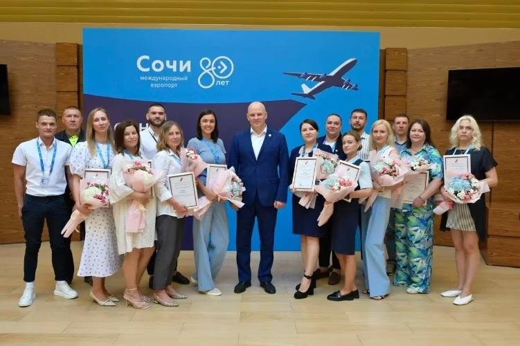 Накануне Дня Воздушного Флота в сочинском аэропорту наградили 100 лучших сотрудников из 2000 работников. Они получили почётные грамоты от Минтранса и администрации края за вклад в развитие воздушной гавани.