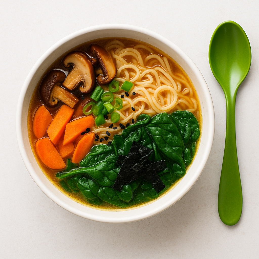 Рамен — это не обязательно сложный суп с долгим бульоном. Веганская версия готовится всего за 20 минут: овощи, лапша и лёгкий, но ароматный бульон. Такой рамен получается насыщенным и согревающим, но при этом остаётся лёгким. Быстрый овощной рамен — это идеальный ужин в японском стиле. Минимум времени, максимум вкуса. Лапша делает блюдо сытным, а овощи и бульон добавляют свежесть и лёгкость. Меняя овощи и специи, можно готовить десятки вариантов. #рамен #азиатскаякухня #веганужин #быстрыйужин #веганрецепты #овощиблюда #полезнаяеда
