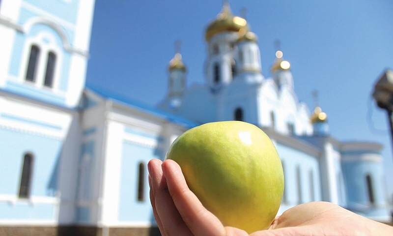 На Руси, где виноград не был широко распространен, его символическую роль заняли яблоки — они созревают как раз к середине августа. Так появилось народное название праздника — Яблочный Спас. При этом в церковной традиции нет жёстких ограничений: в храм можно приносить на освящение любые фрукты и овощи нового урожая.