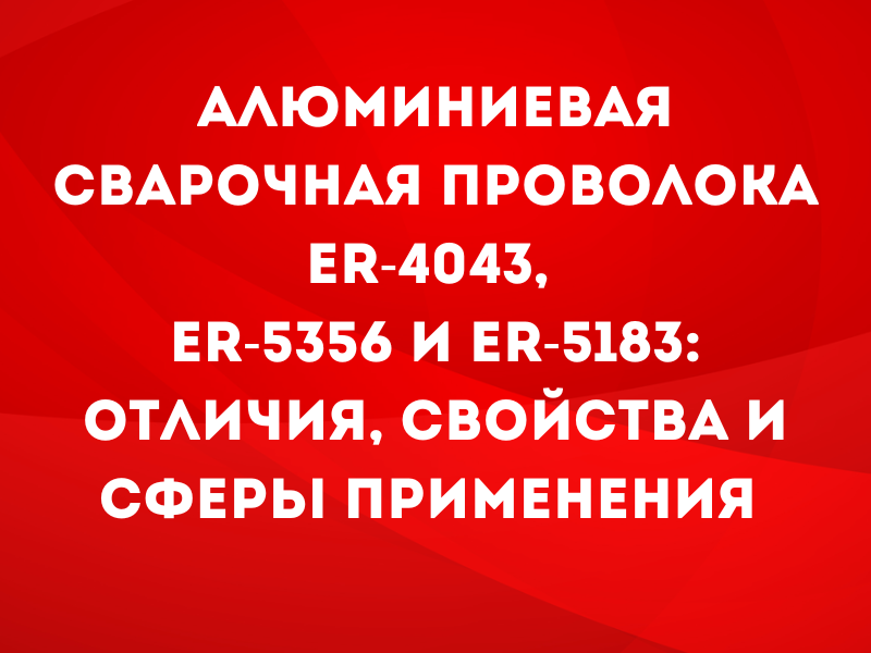Алюминиевая сварочная проволока широко используется в промышленности благодаря легкости, коррозионной стойкости и высокой прочности соединений. Среди популярных марок — ER4043, ER5356 и ER5183, каждая из которых имеет свои особенности. В этой статье разберем их отличия, химический состав, механические свойства и области применения. Проволока для сварки алюминия применяется в: - MIG/MAG-сварке (полуавтоматическая сварка в среде защитного газа) - TIG-сварке (аргонодуговая сварка неплавящимся электродом) Основные требования: Высокая чистота поверхности (отсутствие окислов, грязи) Хорошая подача в сварочном аппарате (мягкость и гибкость) Соответствие стандартам (AWS A5.10, ГОСТ 7871-75, EN ISO 18273) Химический состав (%) : Механические свойства: - Предел прочности: 165 МПа - Предел текучести: 55 МПа - Удлинение: 18% Особенности: Высокое содержание кремния – улучшает текучесть расплава, снижает риск горячих трещин. Используется для литейных сплавов (Al-Si, Al-Si-Mg, Al-Si-Cu). Не подходи