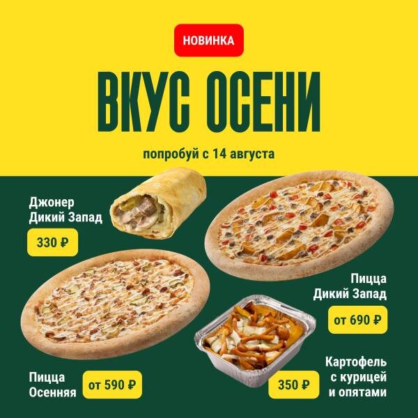 🍂 Осень? Уже сейчас. И мы готовы. Да, календарь ещё упрямо шепчет «лето», но Сибирь уже дышит прохладой — и мы первыми приняли этот вызов. Встречайте сезонное меню, созданное, чтобы мягко и вкусно провести тебя из коротких июльских ночей прямо в золотую осень: 🔥 Pizza “Дикий Запад” — остро, сочно и очень сытно 🍂 Pizza “Осенняя” — уютное сочетание сливочного вкуса и грибного настроения 🥔 Картофель с курицей и опятами — comfort food на максимум 🌯 Джонер “Дикий Запад” — если хочется согреться «на бегу» Новинки доступны с 14 августа — заходи пробовать первым и проводи лето правильно, со вкусом осени 🍕 papajohns.ru/novosibirsk