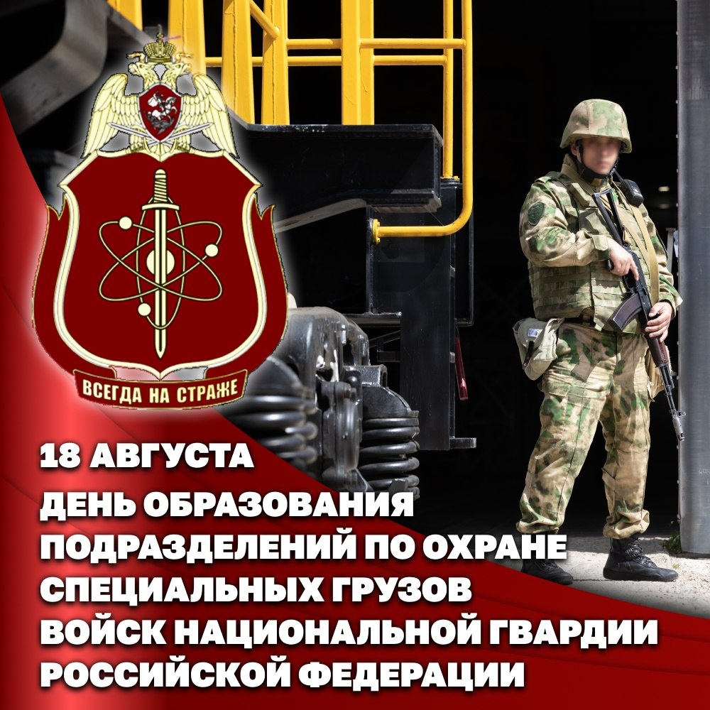 Памятная дата установлена ведомственным приказом в 2017 году. Свою историю подразделения ведут с 1948 г., когда был создан первый взвод по охране специальных грузов в составе полка внутренних войск МВД СССР в г. Арзамас-16. Формирование новых подразделений было продиктовано временем – в стране строились заводы и научно-исследовательские институты, работавшие на оборонную промышленность. Для безопасности перевозки их продукции требовалась надежная охрана. В настоящее время служебно-боевые задачи по охране СГ выполняются войсками национальной гвардии Российской Федерации. Личный состав ведомства успешно обеспечивает неприкосновенность грузов особой важности при их перемещении различными видами транспорта: железнодорожным, автомобильным, воздушным и морским. Поздравляем с праздником всех причастных!
