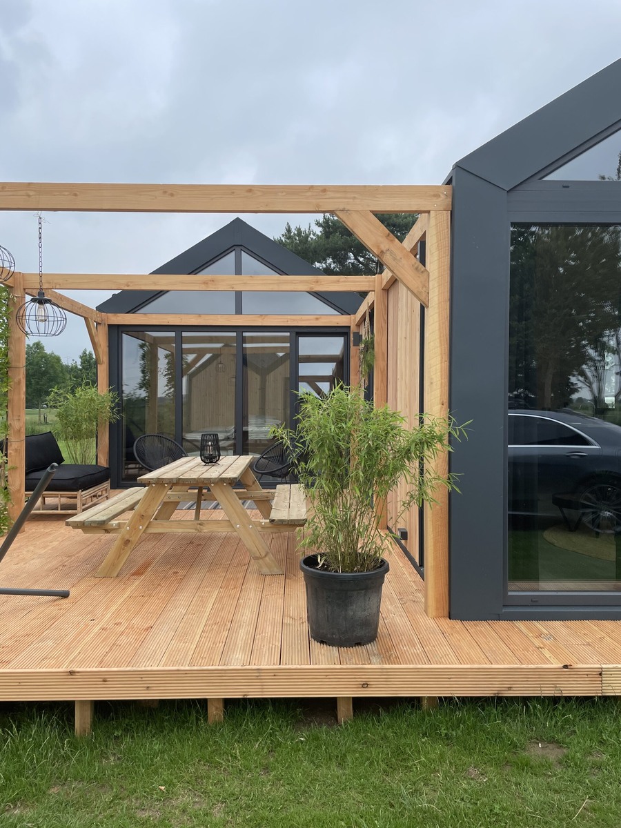 Изменить безыскусный образ модульных домов в представлении россиян призваны здания от ЭКОДОМ 21, стиль которых авторы называют современным шале. Его отличают строгая геометрия, большие окна, обилие дерева в отделке натуральных цветов и минимум деталей на фасадах. Модульные дома от ЭКОДОМ 21 позволяют резидентам жить в полной гармонии с природой: панорамное двуслойное остекление, просторные террасы и облицовка из деревянного массива и реек визуально объединяют пространство дома с окружающей средой.