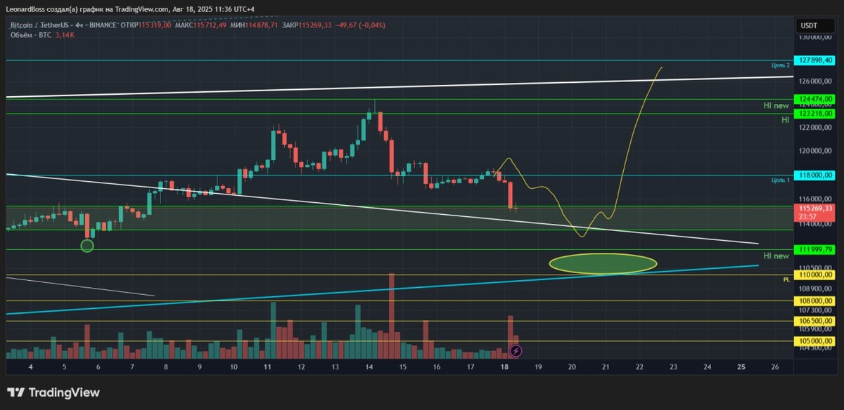 В ответ на пост #мнениепорынку 🔽🔽🔽 Всех приветствую коллеги, в новой неделе, с новыми силами, графиками, желаниями и событиями!! ⚠️Если честно, прям сильно что-то добавить особо и нечего. Вчера всё сказал = всё показал = сегодня мы всё это видим на графиках (красные). Ну и конечно же в очередной раз свежие ликвидации на пол ярда $, надеюсь, что вы прислушались друзья и не пострадали!! ❓Где ждать остановку и разворот?? #BTC = в зоне уровня 114К будет ретест среднесрочной трендовой, где да, может последовать реакция, однако конечной точкой (короткого прокола), мне всё же видится обозначенная зона у голубой трендовой старшего возраста), в районе уровня 110К. Это 2 основные зоны, где я буду чекать поведение откупа!! #ETH = тут вчерашний пост полностью актуален, коллеги. Трендовую цена прошла, если 4Н ТФ сегодня завершит подтверждение, в чем я практически уверен, то едем в зону уровня 4К. Да, по пути есть зона покупателя в районе уровня 4170$, но что-то мне подсказывает, что волна ф
