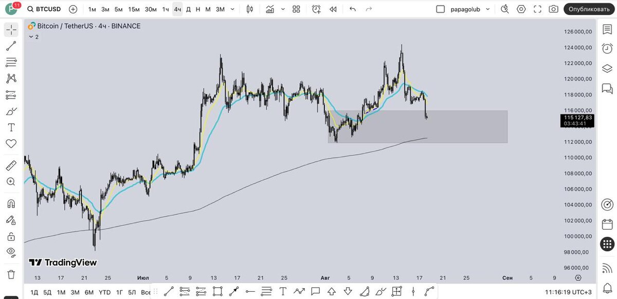 Блок выделенный серым цветом, по сути - последний саппорт перед целью в 100к за #btc