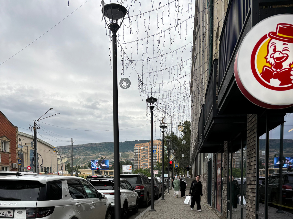 Конечно, находясь в городе Избербаш мы не могли не отправиться в Махачкалу. Путь, как и в Дербент, достаточно прост. Достаточно доехать до жд станции Избербаш и сесть на электричку до Махачкалы. Дорога занимает примерно полтора часа. Мы приехали в Махачкалу днем, вышли на шумном вокзале, а с моря задувал очень холодный ветер. Удивительно, полтора часа дороги, и тут совсем другая погода, небо хмурилось, тучи сгущались. Мы понимали, что оделись слишком прохладно для Махачкалы. ДубльГИС вел нас какими-то странными дорогами. Там, где должны быть пешеходные переходы, их официально не существует, но по факту люди там ходят. В какой-то момент мы поняли, как бессмысленно доверять навигатору и шли по наитию. Мы пришли на площадь к зданию администрации, рядом небольшой парк и детские площадки. Если честно, ничего впечатляющего здесь не было. В центре Махачкалы такие разбитые детские зоны, неухоженный парк. Но жизнь здесь плещет через край… много людей, детей. Мы отправились к рынку. Во