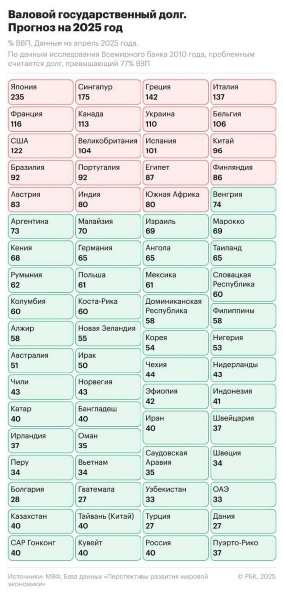 Таблица с долгами стран к ВВП 👆