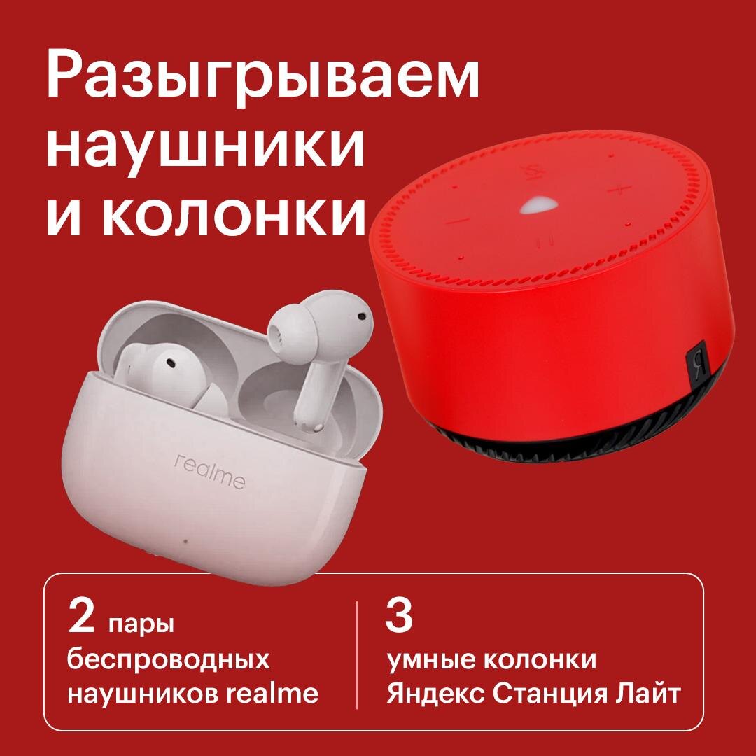 🎁 Дарим ТРИ умные Яндекс.Станции Лайт и ДВЕ пары классных наушников Realme Buds T310!