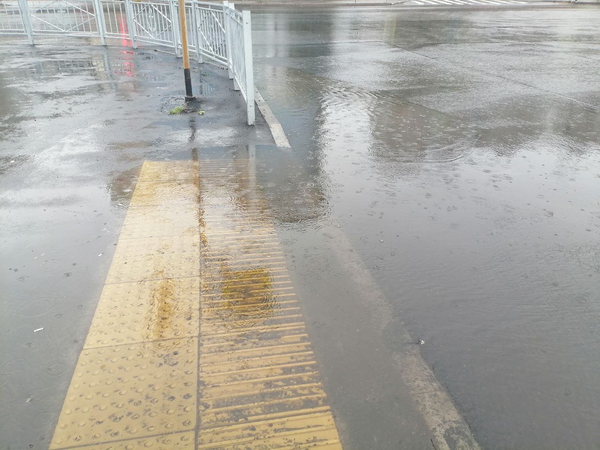 Вы меня простите, но без обсценной лексики уже не обойтись – это ж как надо ремонтировать, чтобы первый же дождь остался на пешеходном переходе?! Где работающая ливнёвка???