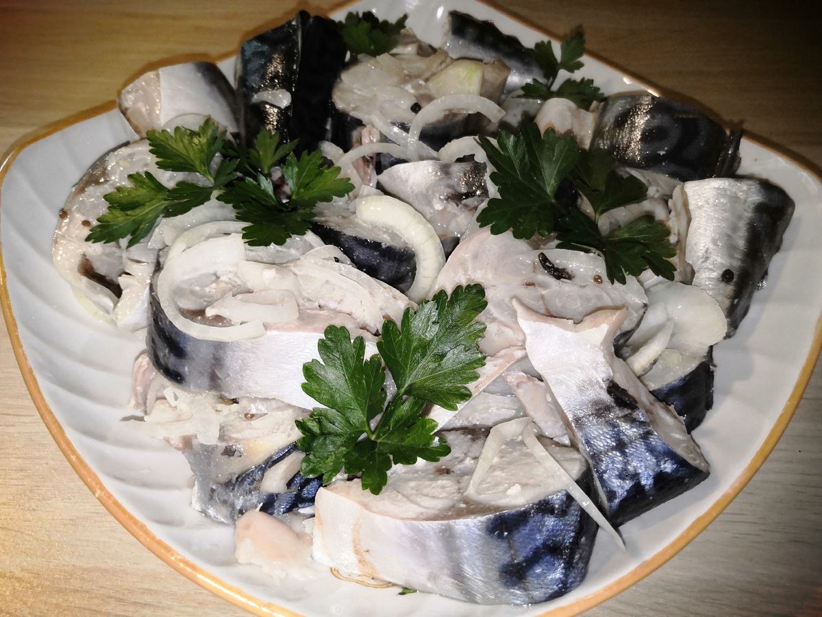 Технология домашнего пряного посола скумбрии. Для приготовления рассола потребуется 1 литр воды, в который следует добавить 5 горошин душистого перца, 15 горошин черного перца, 4 бутона гвоздики, кориандр, 3 лавровых листа, 3 столовые ложки соли, 1 столовую ложку сахара, 3 столовые ложки 9% уксуса и 3 столовые ложки растительного масла. Подготовка тушек рыбы включает удаление головы, хвоста, плавников и внутренностей. Рекомендуется проводить эту процедуру с использованием слегка подмороженной рыбы для обеспечения более эффективной и аккуратной обработки. После удаления отходов рыбу необходимо тщательно промыть под проточной водой и обсушить бумажными полотенцами. В предварительно охлажденный до комнатной температуры рассол следует добавить уксус и растительное масло. Затем необходимо слоями выложить в контейнер часть нарезанного кольцами или полукольцами лука, рыбу и снова лук. Полученную конструкцию следует залить рассолом, закрыть крышкой и оставить при комнатной температуре на 5 час