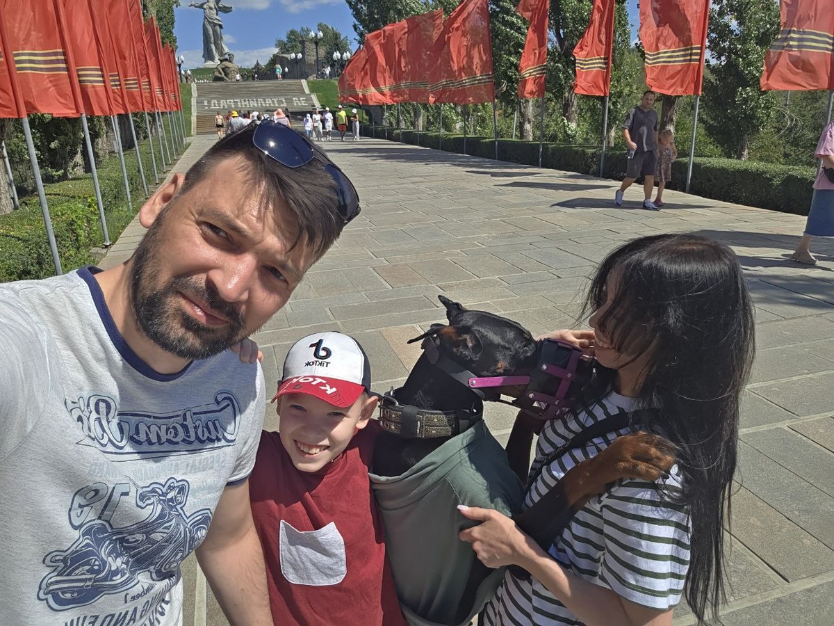 Коротко о нашем отдыхе: +33,5 Не выспались 4 раза нарвались на агрессивных дворняг за одно утро, гуляя в центре, в тч на Мамаевом Кургане (находимся слегка в шоке от этого) Вершину покоряли мы вдвоем, остальные решили то слишком жарко, а у Рейни как обычно не спросили😅 #путешествияссобакой #отпускссобакой #собакиволгограда #доберманволгоград