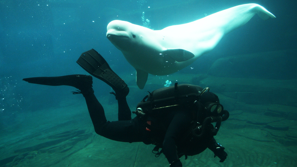 Странный инцидент в китайском океанариуме: белуха атаковала дайверов