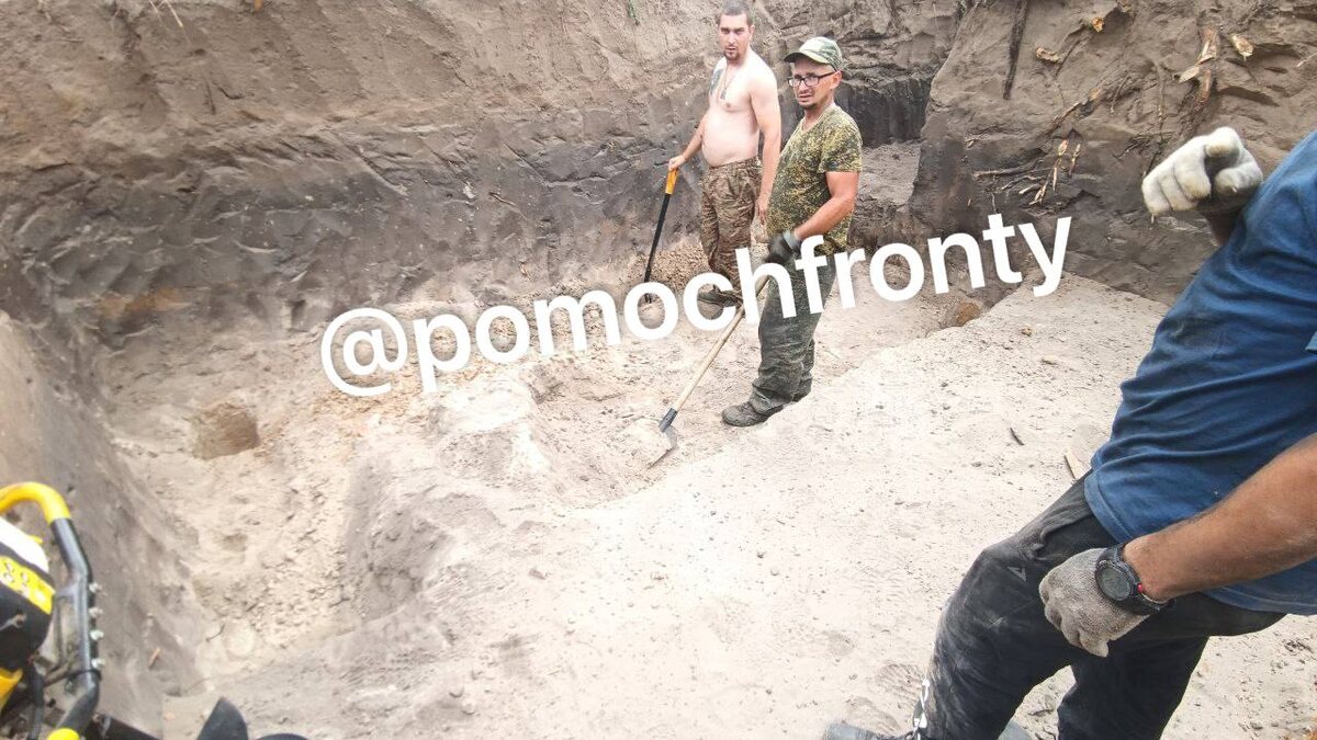 Все бойцы, включая комбата, дружно роют землю под укрепление для орудия (или, судя по размерам, под полноценный блиндаж). У кого-то утро начинается с планёрки, у Барса-2 — с землеройки!